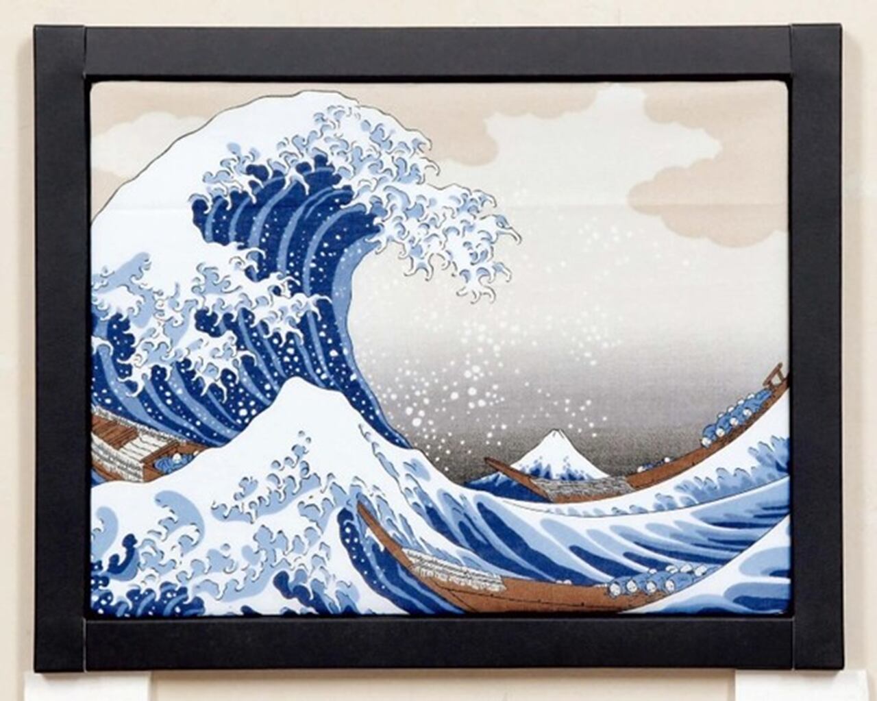 This large-sized handkerchief, featuring Hokusai's iconic ukiyo-e masterpiece “The Great Wave off Kanagawa,” has been transformed into an art frame. It comes in a lightweight, portable paper frame. Enjoy it as a decorative piece for your room. Perfect as a souvenir for overseas!